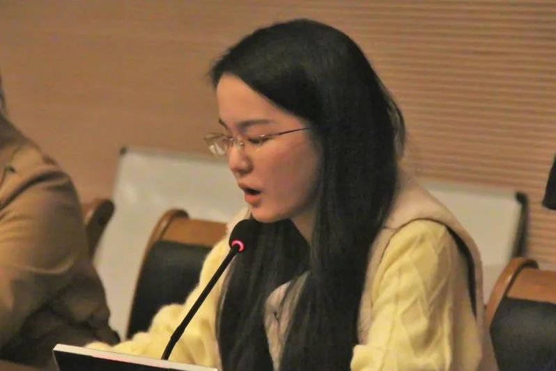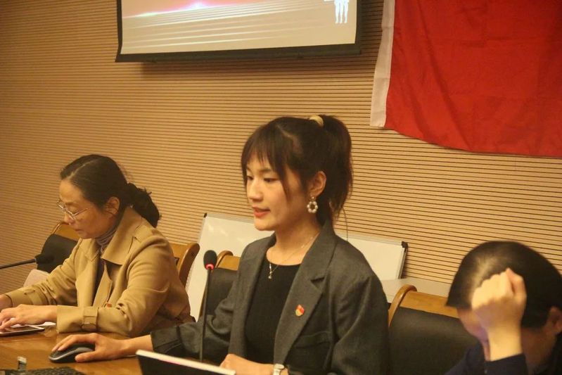 接下来,2019级朝鲜语口译专业的冯莎同学代表积极分子发言。她从个人经历出发,讲述了自己的入党动机和对党员身份的理解。她指出,党员同学应该时刻发挥先锋模范作用,积极参与社会服务与城市建设,中华民族的伟大复兴离不开每一位青年的砥砺奋斗。她提到,党员同学应该在党组织的带领下,积极投身社会实践,不断涵养党性修养,做到知行合一。作为高翻学子,她也呼吁在座同学发挥专业所长,讲好中国故事,树立家国情怀。