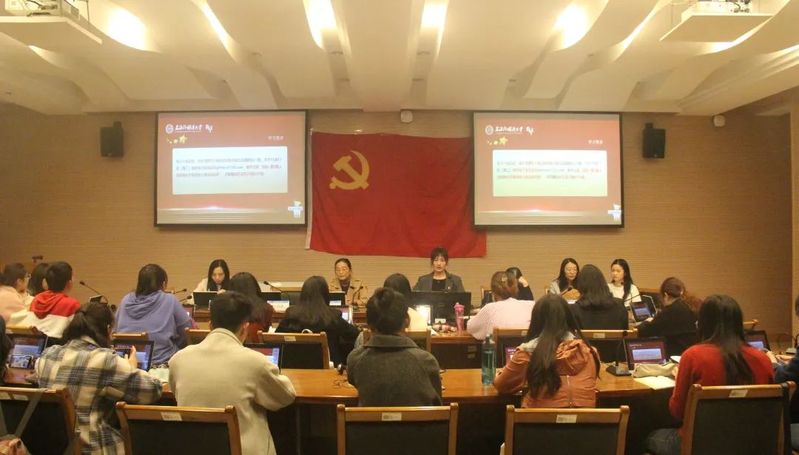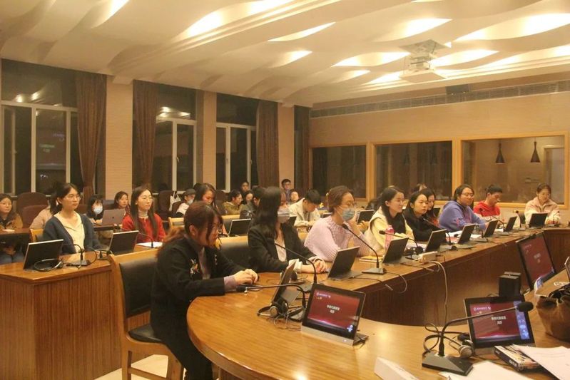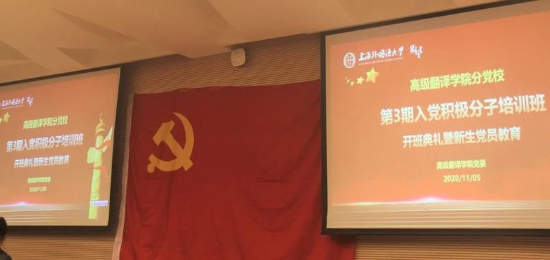 11月5日下午,高级翻译学院分党校第3期入党积极分子培训班开班典礼暨新生党员教育活动在上海外国语大学虹口校区二号楼四楼同传会议室顺利召开。高级翻译学院党委书记赵美娟,党委委员江帆,党委委员、兼职党建组织员王卫萍,党员教师张秀丽,专职辅导员樊世琛,兼职辅导员孔雪静、2019级和2020级入党积极分子以及2020级新生党员代表出席了本次会议。会议由洪莹老师主持。