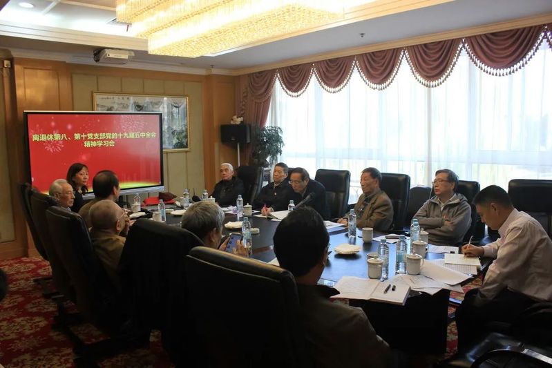 11月9日,离退休第八支部、第十支部在上外迎宾馆二楼会议室召开支部党员大会,集体学习党的十九届五中全会精神并作交流。