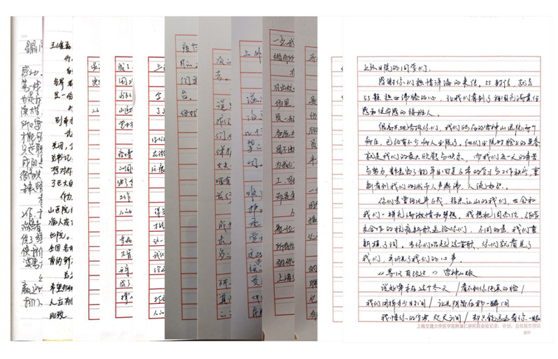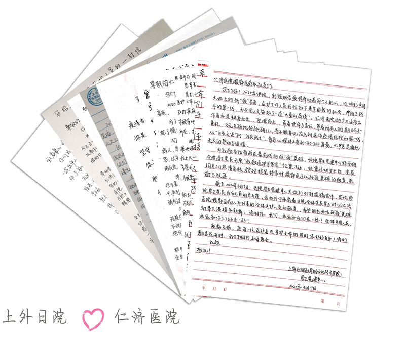 沪汉两地信,挚传仁济情。在学院党建中心的征集下,来自全国各地乃至海外的数十封三行情书、五十五封手写信,承载着日院学子对前线白衣战士敬意、爱戴和最诚挚的祝福,饱含着日院学子对“战疫”取得胜利的寄托、期盼和最坚定的信念,经由仁济医院送到了身处雷神山医院的援鄂医护人员的手中。