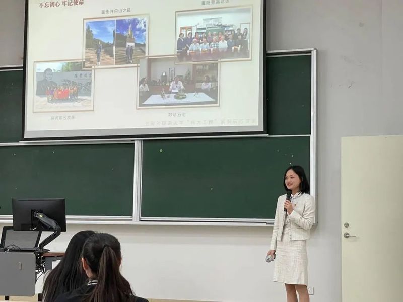 刘老师向大家讲述了在疫情中涌现的“上外力量”。“抗疫”期间,“中国答卷”和“中国力量”共筑中华民族的“抗疫”精神,令人动容无比。根植于这种“中国力量”,上外在疫情期间也涌现了许多的“抗疫”英雄,他们作为“上外力量”交出了“上外答卷”。徐旻老师便是其中的典型代表。