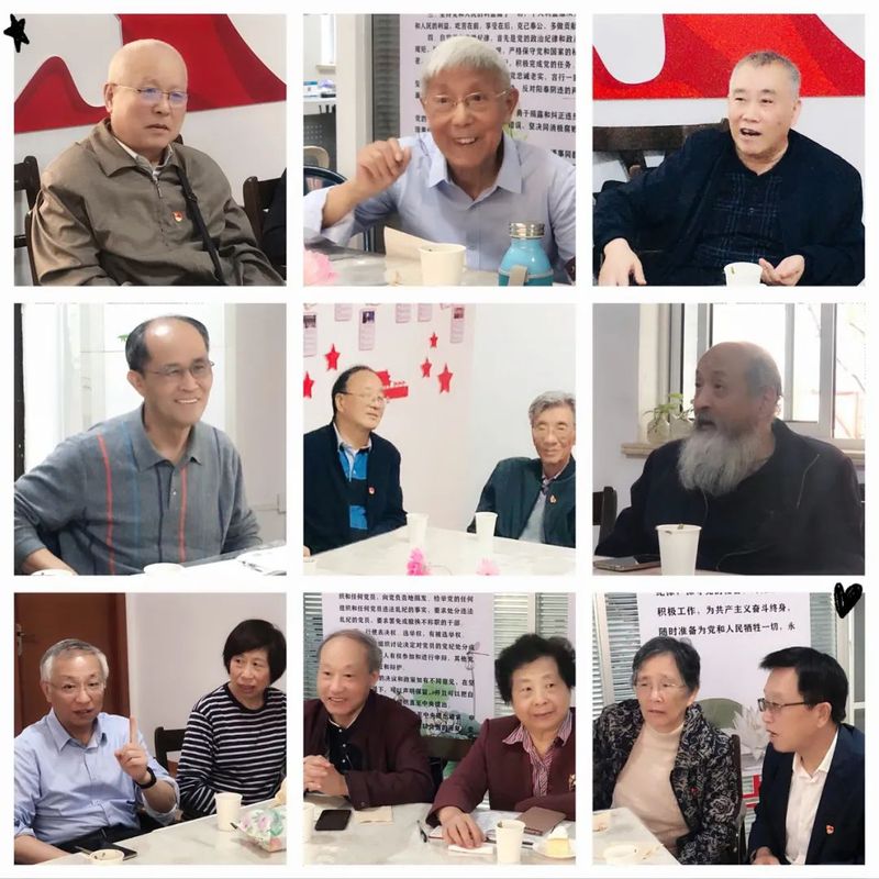 教授们大多还在学校的教学科研岗位上发挥着余热,但依然相继来到支部组织生活会会场。离退休工作处处长丁永祥和党总支书记顾蔚同志专门看望参会的老党员。
