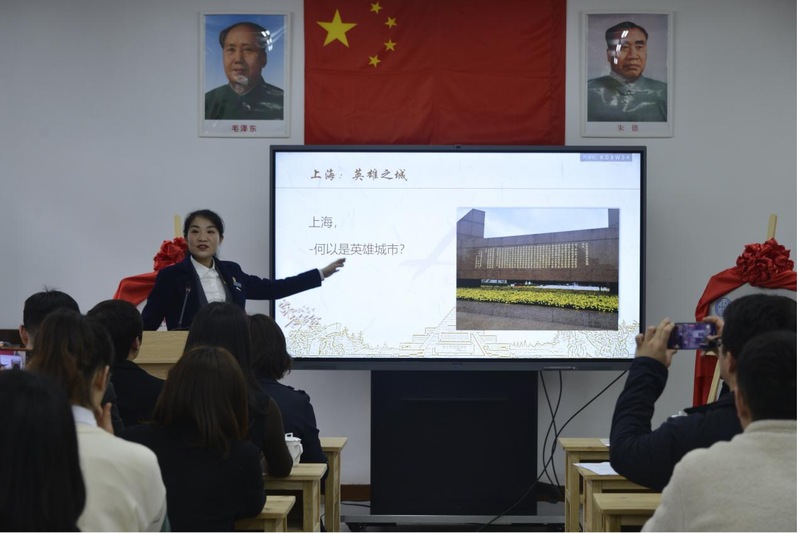 时值清明前夕,当天,来自上海外国语大学英语学院的几十位预备党员、党员,在庄严肃穆的国歌与国际歌的音乐声中,向纪念碑敬献花篮,在徐汇区龙华烈士陵园进行了一堂生动的党课。场内陈列的手稿、画廊、雕塑、电影以及微党课《龙华的前世今生》、多媒体舞台剧《血脉中华》等多种形式,让同学们深入了解这片伟大土地的过去和现在,清楚现在的美好生活来之不易;在纪念馆里的党旗面前,庄严宣誓,对他们来说,这必定是一次难忘的党课。