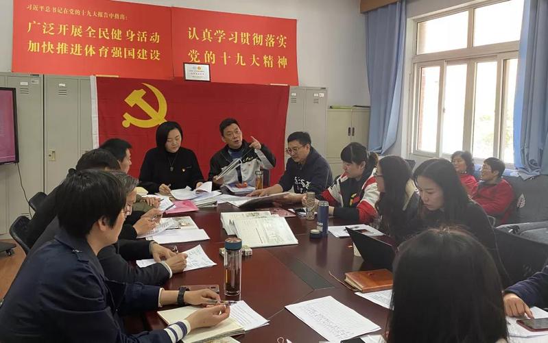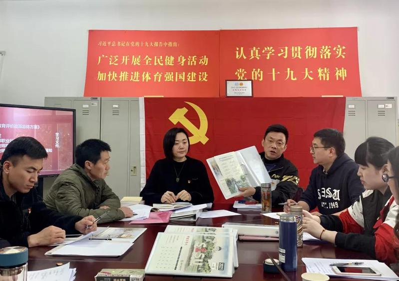主题党日活动后,由体育教学部王骏主任主持,部门全体教职工集中学习《深化新时代教育评价改革总体方案》。《深化新时代教育评价改革总体方案》是指导深化新时代教育评价改革的纲领性文件。体教部深入贯彻《总体方案》重要指示精神,积极响应学校“应学应尽学、应训尽训”的要求,进一步推进我校体育教育评价改革工作。王骏主任根据《总体方案》相关精神,在“强化体育评价。建立日常参与、体质监测和专项运动技能测试相结合的考查机制,将达到国家学生体质健康标准要求作为教育教学考核的重要内容,引导学生养成良好锻炼习惯和健康生活方式,锤炼坚强意志,培养合作精神”和“加强大学生体育评价,探索在高等教育所有阶段开设体育课程”方面,对本科生体育课程、本科生体质健康测试、体育场馆设施建设、体育教师配置等方面提出具体改革措施,将体育教育贯彻本科生和研究生教育的全过程。