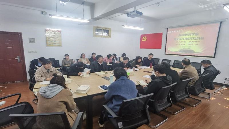 3月26日下午,继续教育学院在3号楼211会议室召开学院党史学习教育动员大会。学院党政领导班子成员、党支部书记、支部委员及全体党员师生参加学习。党总支副书记陈建培主持会议。