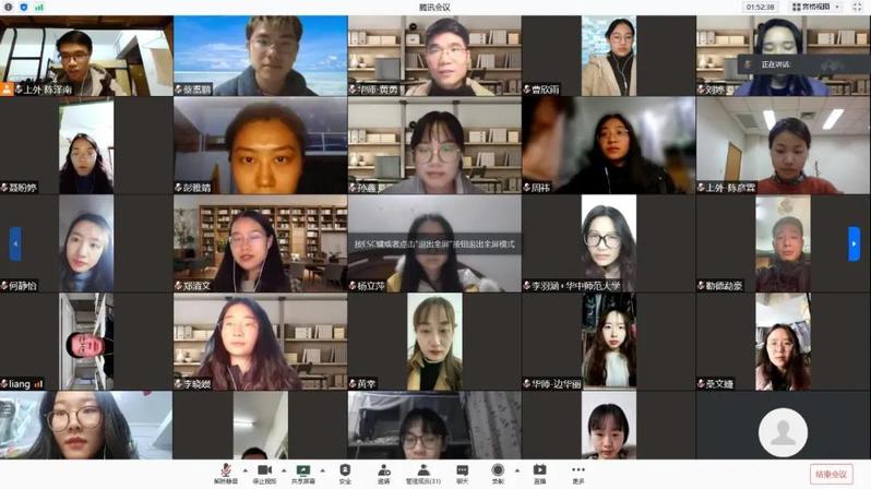 在本次活动中,上海外国语大学与华中师范大学的同学们相聚云端,积极开展对话交流,解读脱贫攻坚的理论政策与实际意义,并回顾本校脱贫事迹,共话青年责任担当,探索出一条将理论学习、学校实践与青年责任相结合的支部活动新路径。今后,两校学子将继续携手合作,开展更多共建交流活动,并在学习、工作与生活中不忘初心使命,为巩固脱贫攻坚的伟大成果,为实现第二个百年的奋斗目标而砥砺前行。