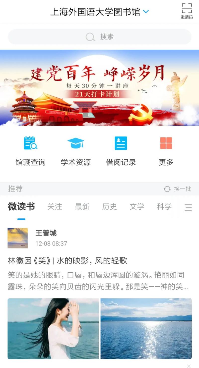 Step3 :登录完成后在首页右上角点击“邀请码”,输入邀请码“shisu”进入图书馆首页。