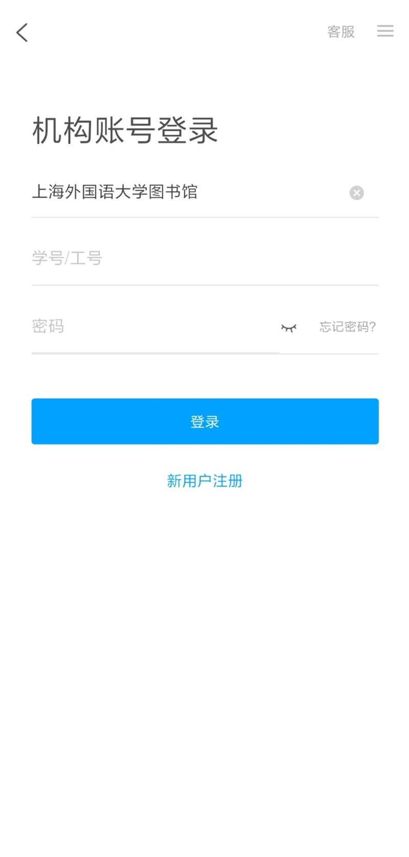 Step2 :机构账号登录,输入单位名称“上海外国语大学图书馆”,输入学工号及密码登录(记得绑定好手机号,便于后期获奖联系哦)。