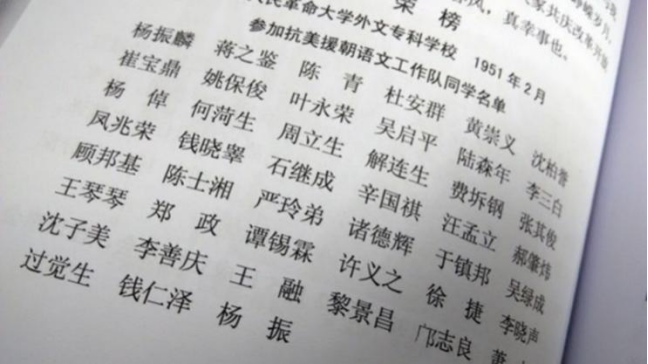图.04 上海外国语大学参加抗美援朝语文工作队同学名单